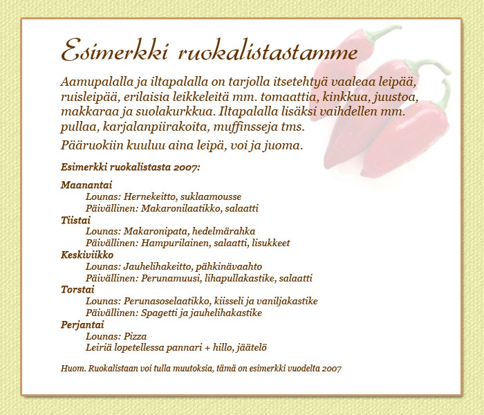 Ratsastusleirillä syödään herkullista kotiruokaa Mikkolan Ratsastuskoulussa on mukavat majoitustilat